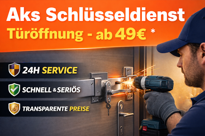 • Notfalldienste für Garagenöffnungen und Wohnungstürschloss-Austausch sind verfügbar, mit Preisen ab 39 €.
