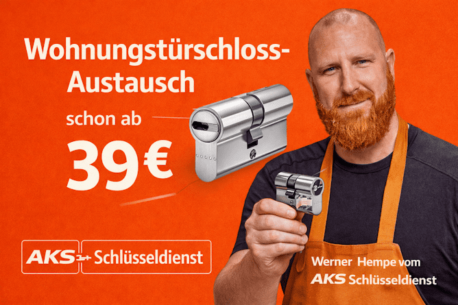 - Türzylinderwechsel sind bereits ab 39 € verfügbar, inklusive Anbohrschutz.